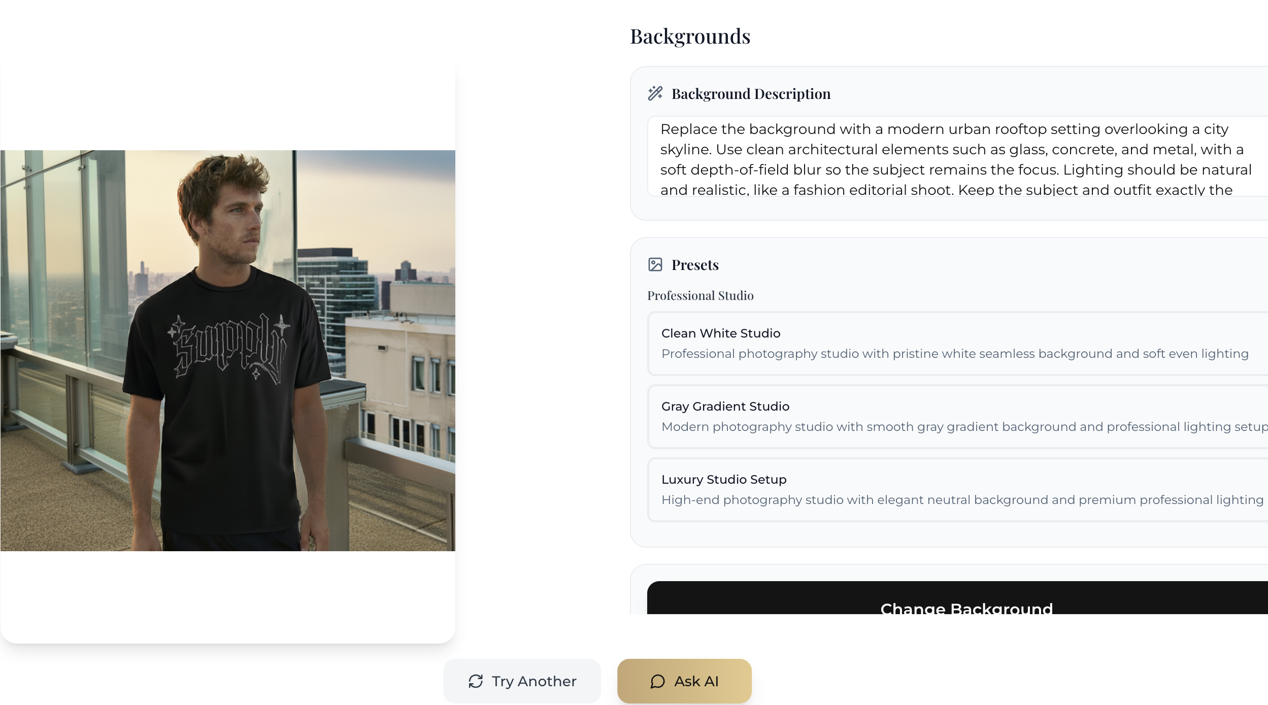 Easily change the background after trying on an outfit. See your look in any environment.